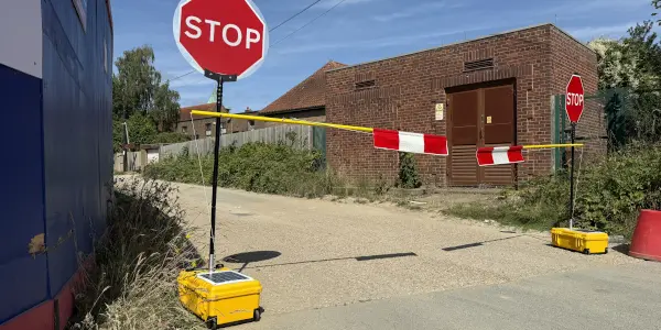 INSTABOOM Flagger is a portable, solar-powered micro-barrier that lets one operative control traffic or pedestrian lanes safely from up to 800m away.